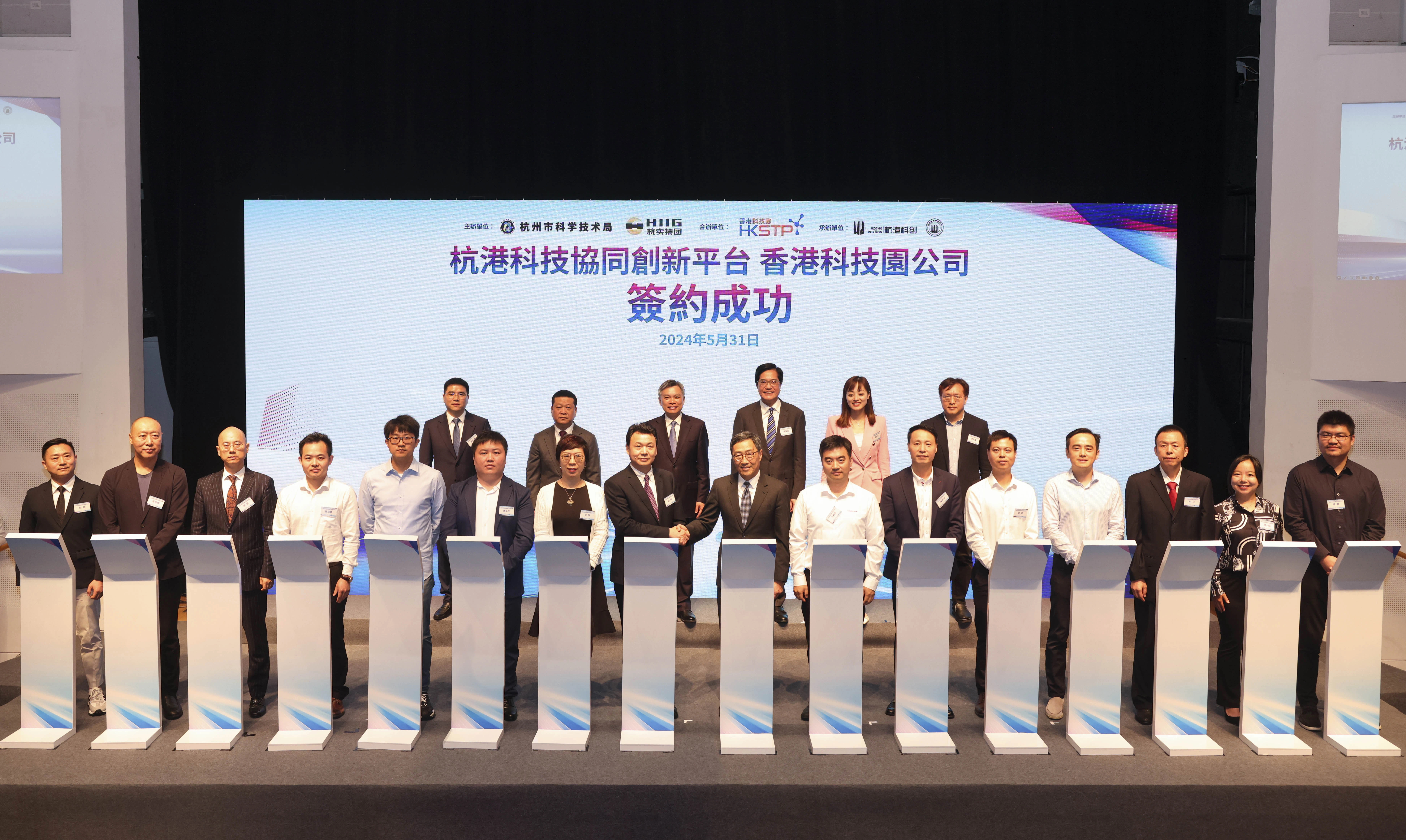 2024年5月31日,MK在线登录官网党委书记、董事长钮健代表杭州创新孵化中心(香港)有限公司与香港科技园公司行政总裁黄克强签署联合孵化协议,并与 14家杭州科创企业签署入园发展合作备忘录。